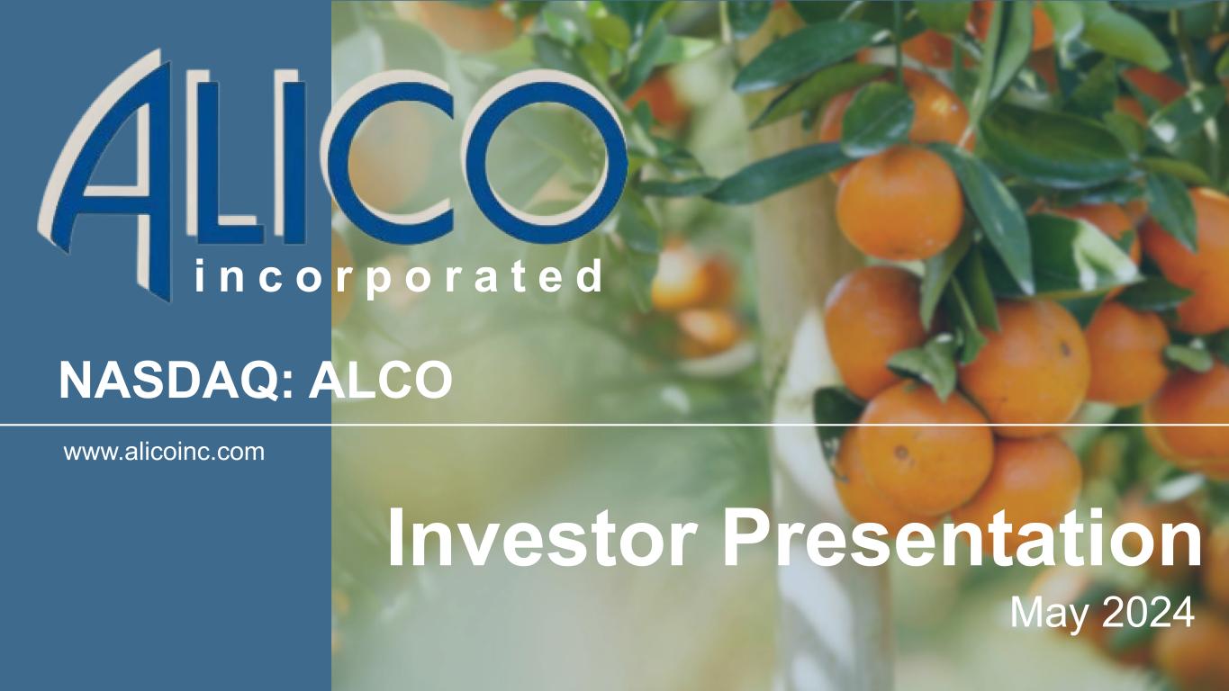 Investor Presentation i n c o r p o r a t e d NASDAQ: ALCO www.alicoinc.com May 2024