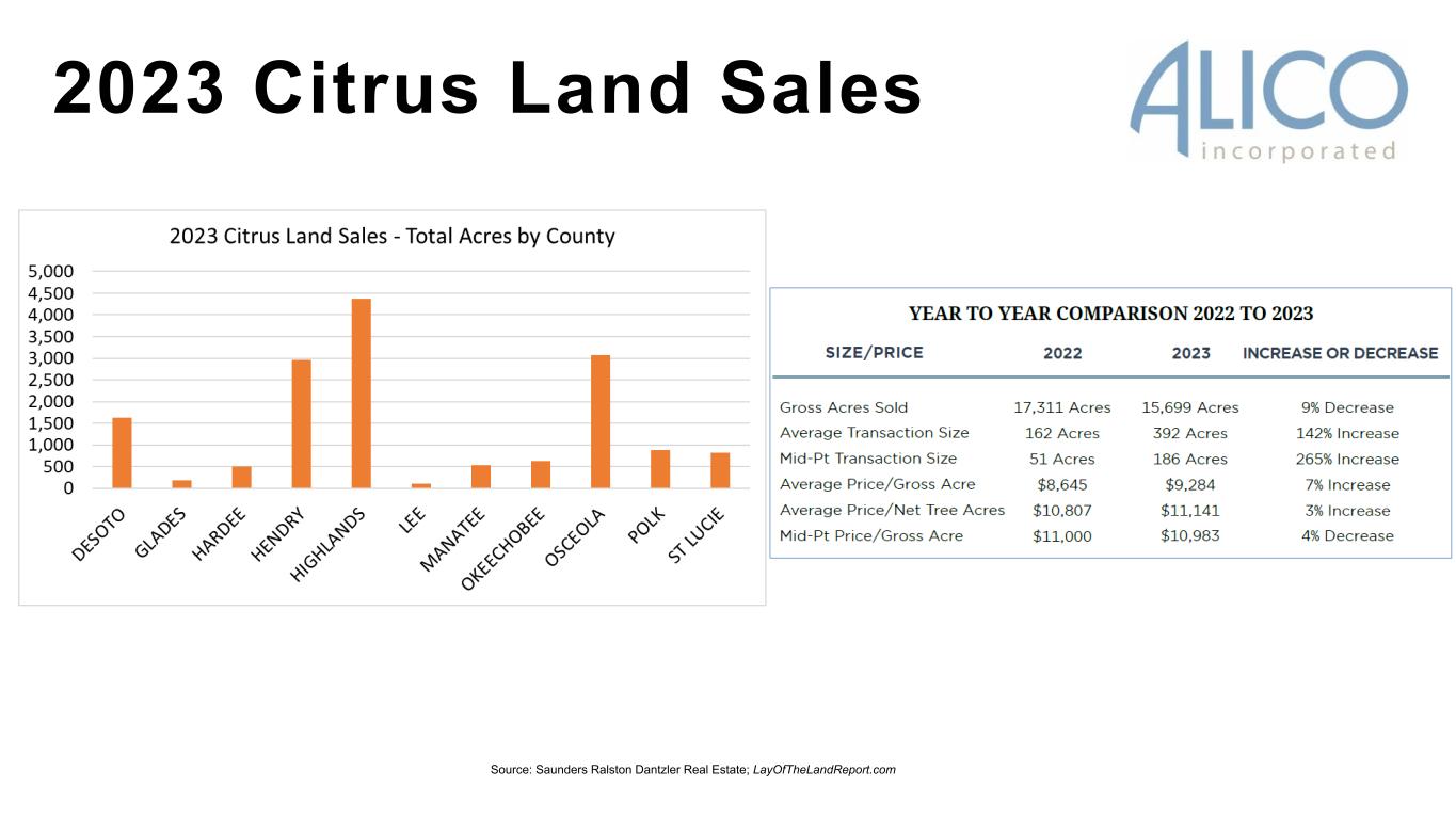 2023 Citrus Land Sales Source: Saunders Ralston Dantzler Real Estate; LayOfTheLandReport.com