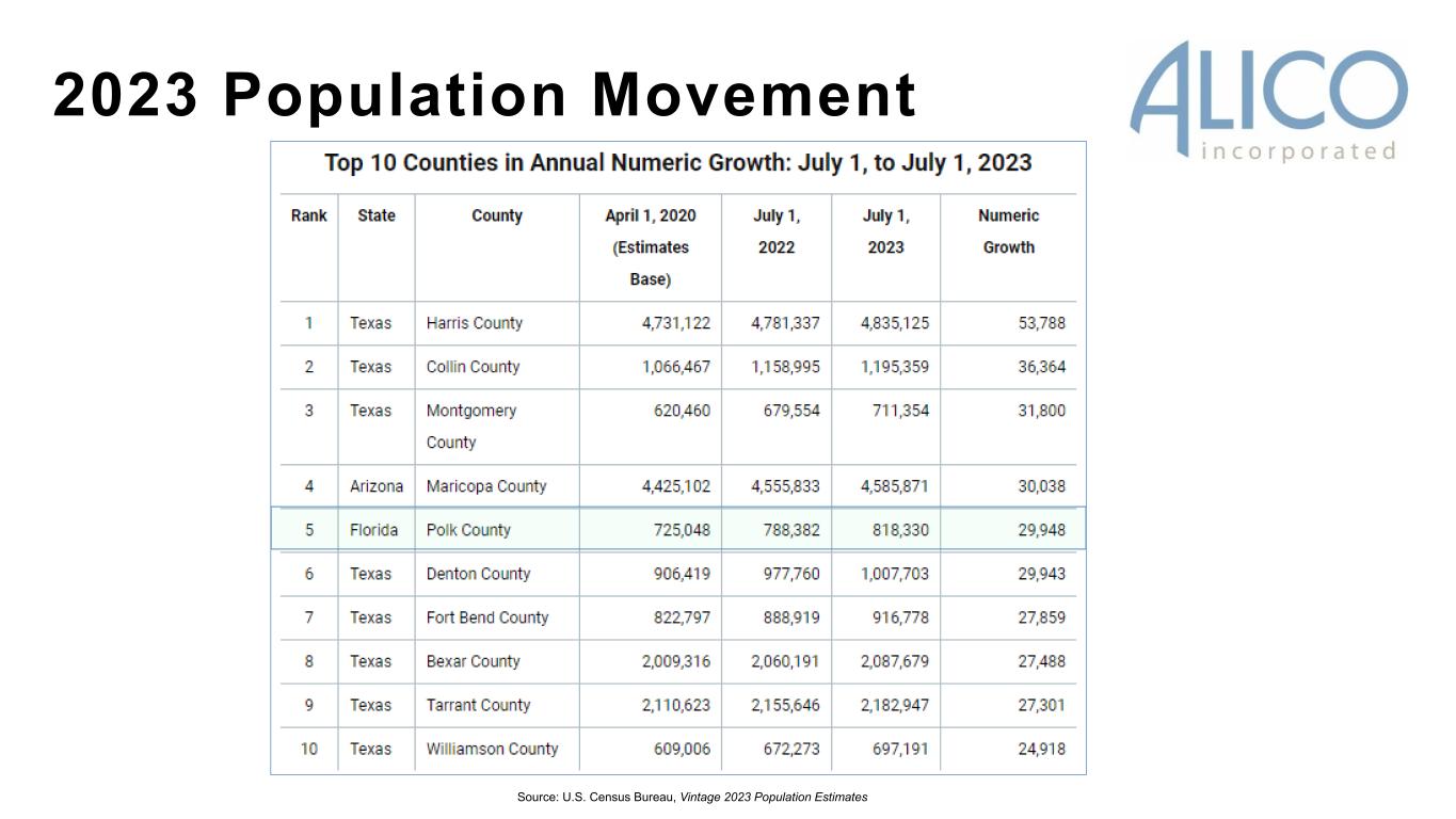 2023 Population Movement Source: U.S. Census Bureau, Vintage 2023 Population Estimates