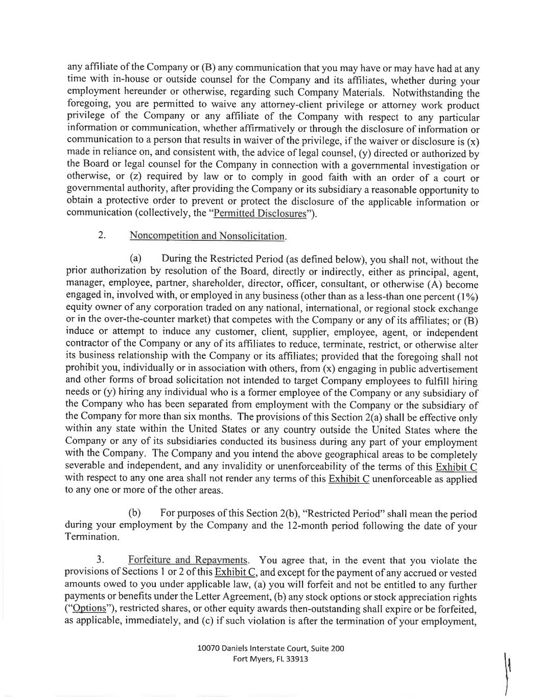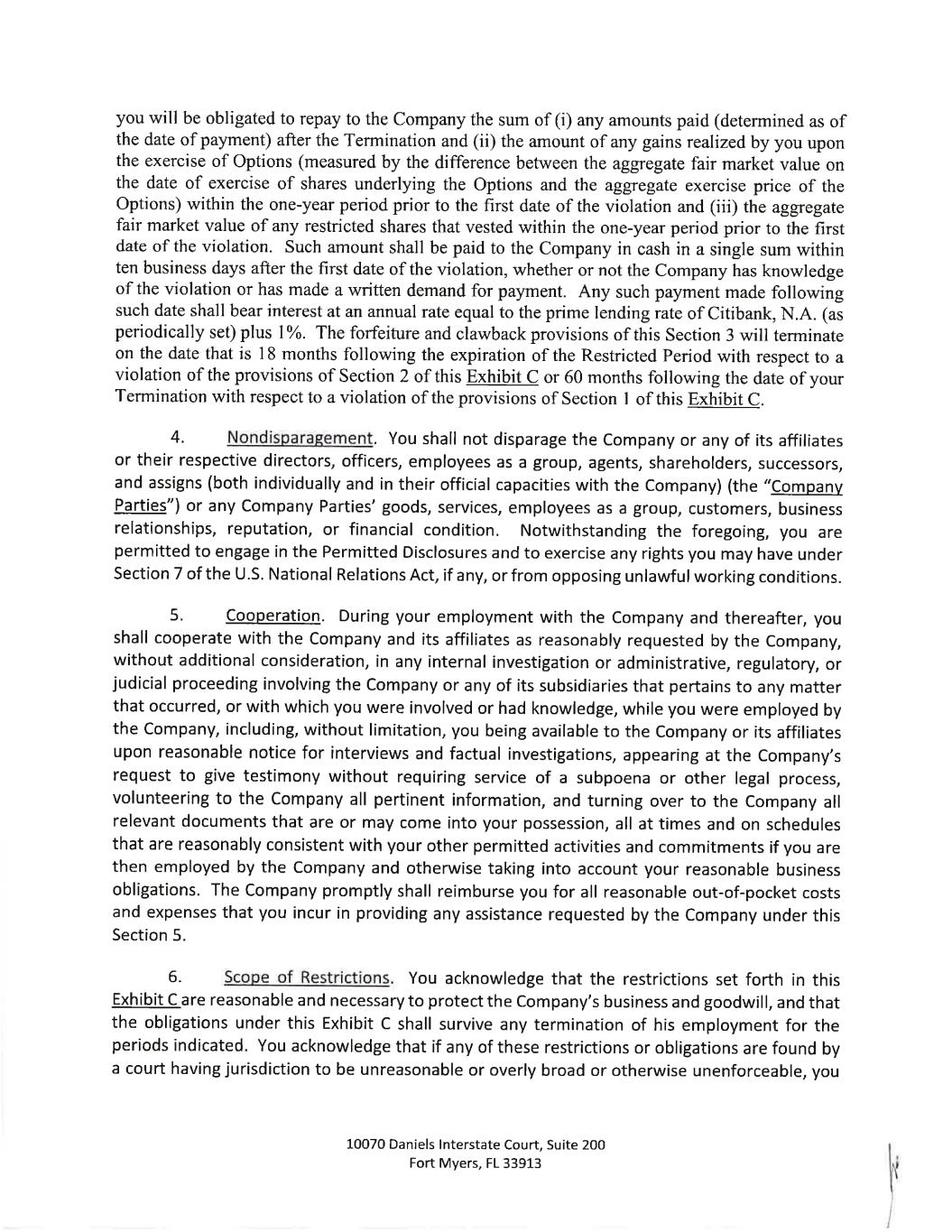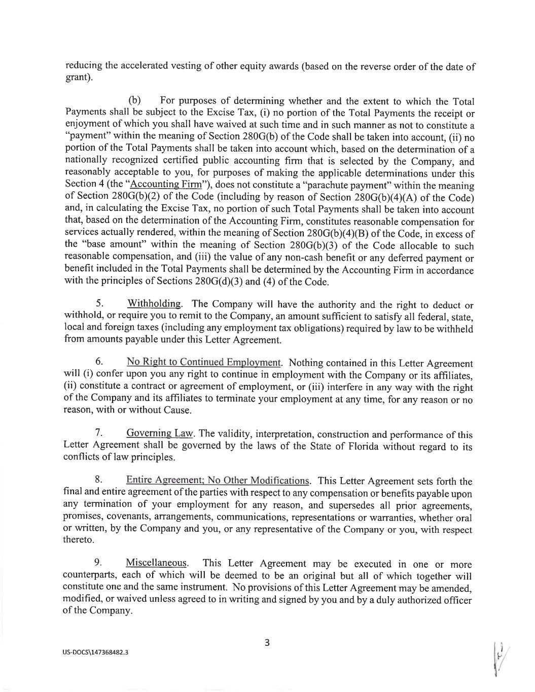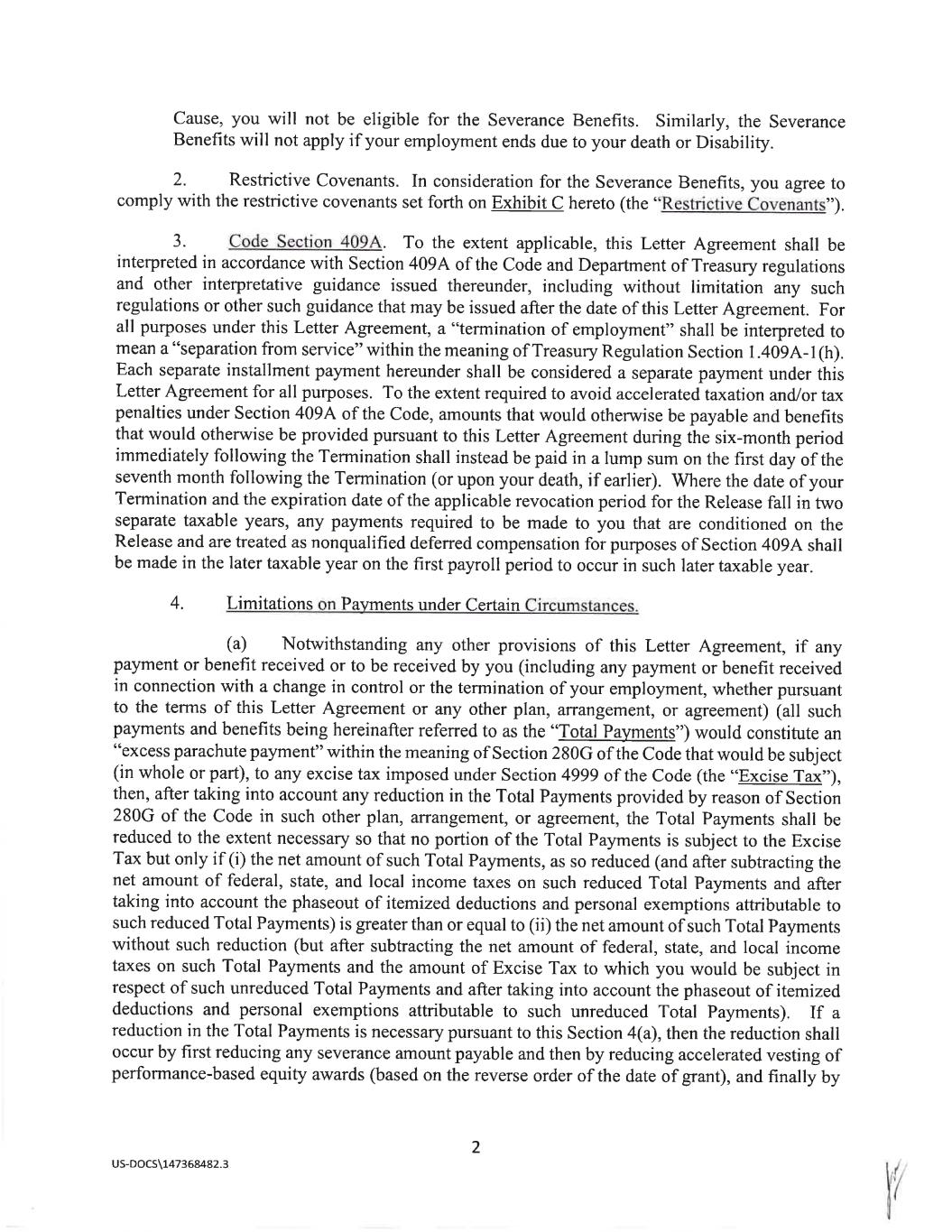 May 28, 2024 James Sampel 5386 Quarry Rock Rd Lakeland, FL 33809 Re: Severance Benefits Dear James: SEVERANCE AGREEMENT You are rece1Vmg this letter (this "Letter Agreement") because Alico, Inc. (the "Company") has determined to provide you with certain separation benefits for which you may become eligible upon certain terminations of your employment with the Company (a "Termination"), subject to the terms and conditions set forth in this Letter Agreement. 1. Severance Benefits on Termination without Cause: Resignation for Good Reason Following a Change in Control. (a) If your Termination is (x) by the Company other than for Cause, death, or Disability or (y) on or following a Change in Control, by you for Good Reason (each capitalized term, as defined below on Exhibit A hereto), then, subject to your execution of a release substantially in the form attached to this Letter Agreement as Exhibit B hereto (the "Release") and the Release becoming effective and irrevocable in accordance with its terms by no later than the 55th day immediately following the date that you incur a "separation from service" within the meaning of Section 409A of the Code of 1986 and your continued compliance with the Restrictive Covenants (as defined below), the Company shall pay to you an amount equal to your annual base salary (the "Severance Amount"). The Severance Amount shall be paid to you in equal installments for the one year period following your date of termination in accordance with the Company's regular payroll practices, as in effect on the date of termination. In addition, during this one-year period, the Company will provide to you the same health care benefit coverage being made available to similarly situated active Company employees ( at no cost to you in excess of the employee premium cost applicable to similarly situated active Company employees) provided that you will be eligible to continue to receive coverage under the Company's group health plans (together with the Severance Amount, the "Severance Benefits"). For the avoidance of doubt, if you resign, retire, or otherwise voluntarily terminate your employment with the Company for any reason or if the Termination is by the Company for 1 US-DOCS\147368482.3 Exhibit 10.2