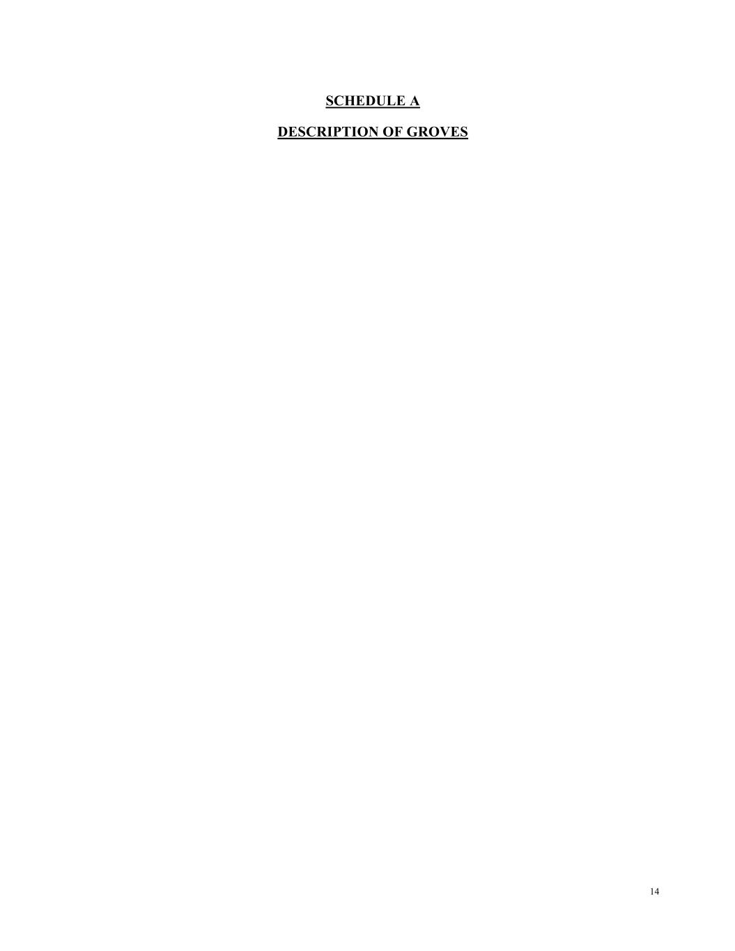 14 SCHEDULE A DESCRIPTION OF GROVES